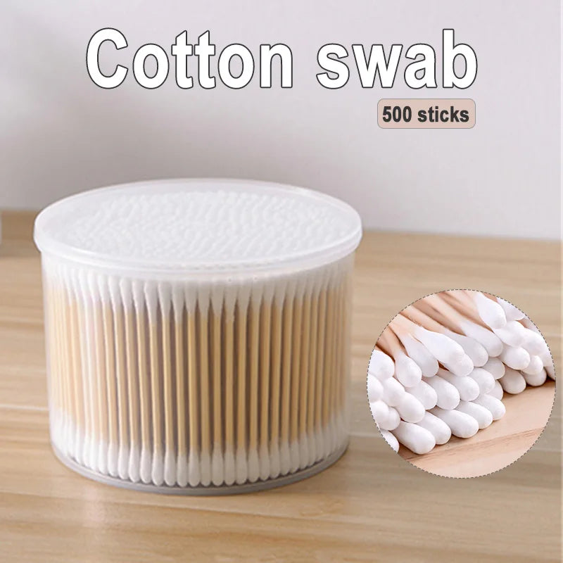 500 PCS Cotton Swabs With Case Natural Organic Paper Cotton Dual Round Head Cotton Swabs Strong Bamboo Sticks Cosmetic Tools