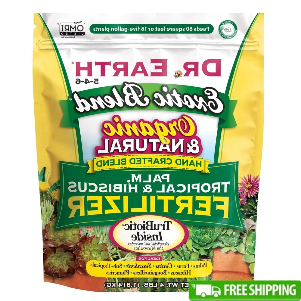 Dr. Earth Exotic Blend Palm, Tropical & Hibiscus Fertilizer Polybag 4lb Exotic Blend Palm, Tropical & Hibiscus Fertilizer is i for all tropical and sub-tropical plants including palms, hibiscus, plumeria, ferns, bougainvillea and others. It's quick release of nutrients coupled with it's ability to continue feeding over several months ensures lush, healthy growth of all your tropical' s. 100% organic & natural, it contains no GMO's, chicken manure or sewage sludge and is people and pet safe.