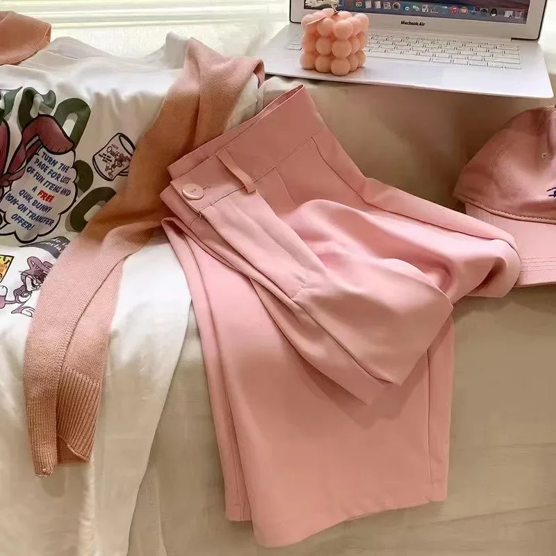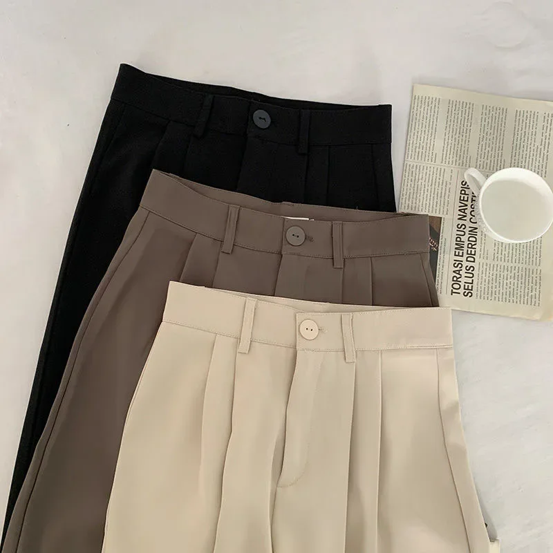 Fanan Casual Suit Pants Women Korean Fashion High Waist Office Straight Pants Woman All-match Streetwear Loose Wide Leg Trousers