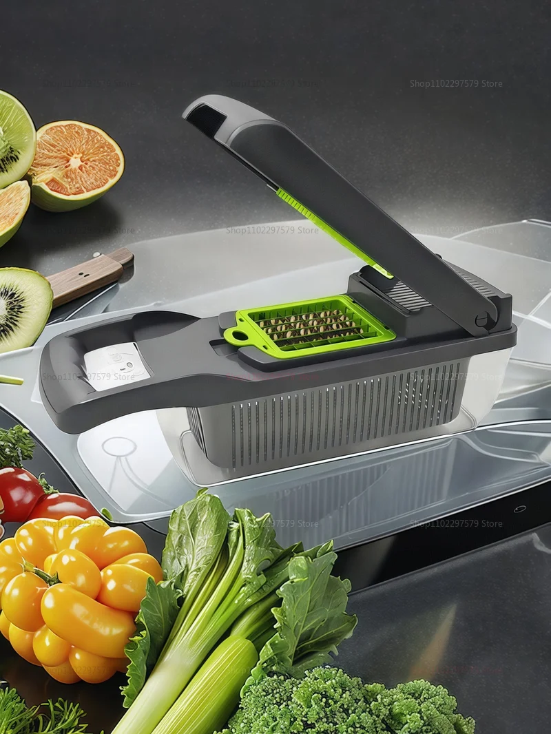 Household Vegetable Slicer and Food Chopper Kitchen Tool with Tomato Carrot Onion Grater Shredder for Meal Prep and Cooking