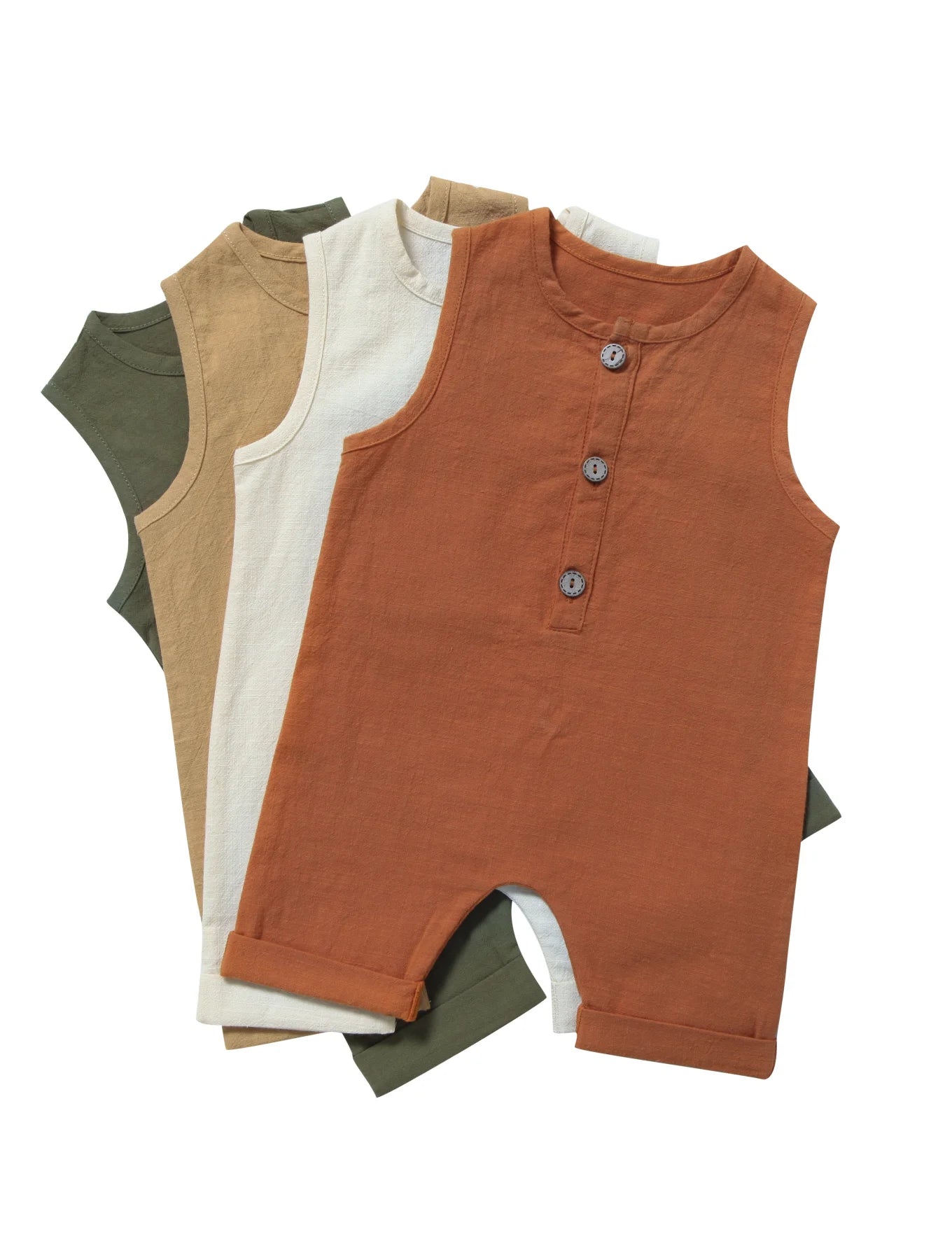 INS New Children's Jumpsuit Cotton and Linen Solid Color Newborn Crawler Unisex Bodysuit Baby Diaper Cover