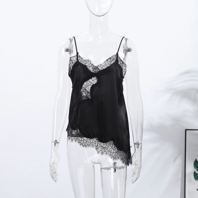 Sexy Chic Black Lace Cami Tops Women V Neck Patchwork Sleeveless Y2k Girl Tops Fashion 2025 Summer Holiday Beach Tank Tops