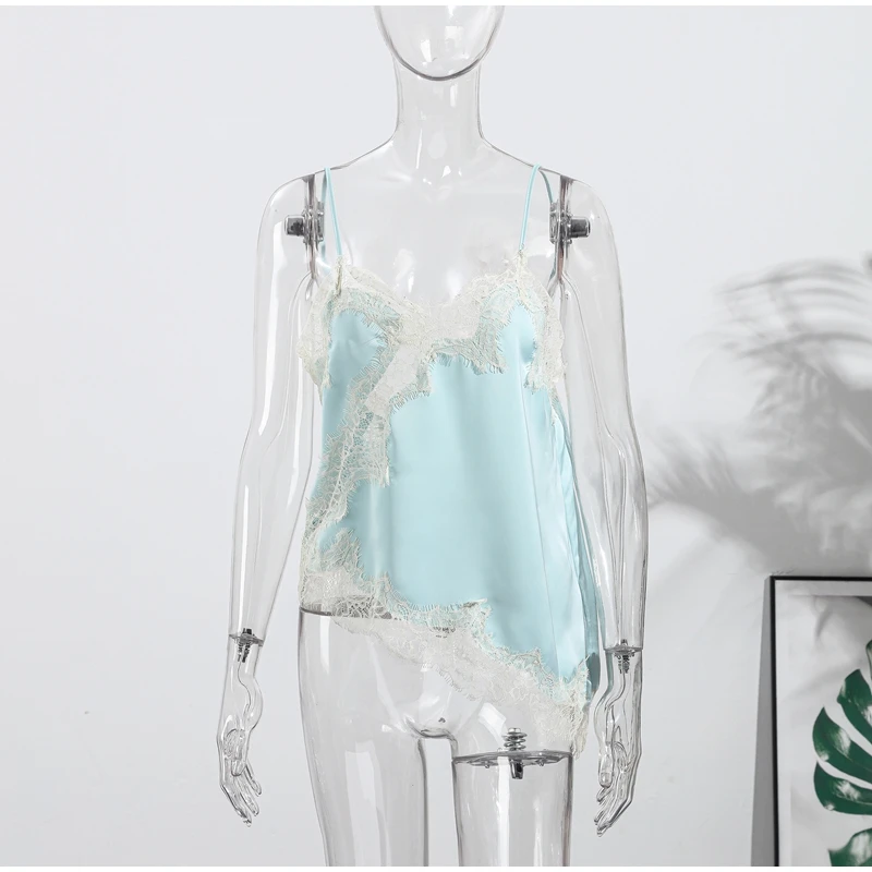 Sexy Lace Sling Tops Women Loose V Neck Sleeveless Backless See Through Top Female 2025 Summer Fashion Chic Solid Streetwears